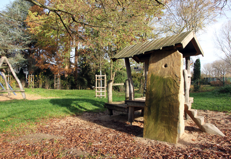 Der Hauptweg aus Kleinsteinpflaster in Grauwacke steht im Kontrast zur Flächigkeit der Stützwände aus Betonfertigteilen. Für die ergänzenden Seitenwege wird das vorhandene Pflaster wiederverwendet. Auf Grund der Lage des Bauvorhabens im Landschaftsschutzgebiet sind im Rahmen eines landschaftspflegerischen Begleitplans neue Gehölzflächen und heimische Baumarten gepflanzt worden. Bestehende Spielgeräte sind Instand gesetzt und neu arrangiert worden. In einer komplizierten Bestandslage mit Nachbarabstimmung, Deichschutz und Landschaftsschutz wird so der vorhandene Freiraum besonders in Wert gesetzt.